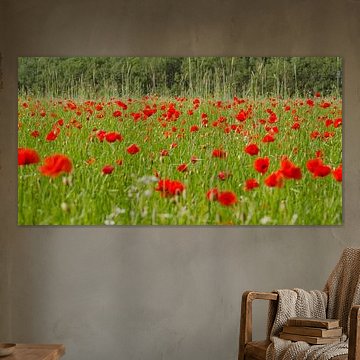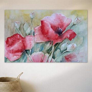 De klaproos, ook wel papaver of heksenkruid genoemd, is een prachtig rode bloem. De bloem kan zowel in het wild als in tuinen worden gespot, maar doet het ook goed als decoratie aan de muur. Een prachtig kunstwerk met een vrolijk zomerse uitstraling, waar je elke dag van kunt genieten.