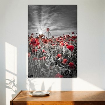 De klaproos, ook wel papaver of heksenkruid genoemd, is een prachtig rode bloem. De bloem kan zowel in het wild als in tuinen worden gespot, maar doet het ook goed als decoratie aan de muur. Een prachtig kunstwerk met een vrolijk zomerse uitstraling, waar je elke dag van kunt genieten.