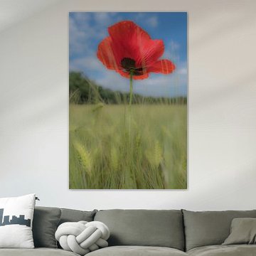 De klaproos, ook wel papaver of heksenkruid genoemd, is een prachtig rode bloem. De bloem kan zowel in het wild als in tuinen worden gespot, maar doet het ook goed als decoratie aan de muur. Een prachtig kunstwerk met een vrolijk zomerse uitstraling, waar je elke dag van kunt genieten.