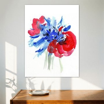 De klaproos, ook wel papaver of heksenkruid genoemd, is een prachtig rode bloem. De bloem kan zowel in het wild als in tuinen worden gespot, maar doet het ook goed als decoratie aan de muur. Een prachtig kunstwerk met een vrolijk zomerse uitstraling, waar je elke dag van kunt genieten.