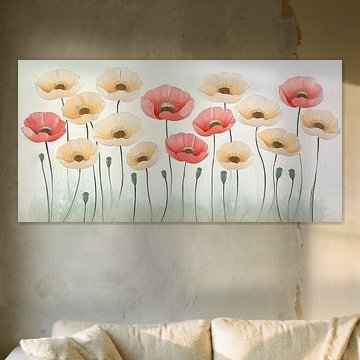 De klaproos, ook wel papaver of heksenkruid genoemd, is een prachtig rode bloem. De bloem kan zowel in het wild als in tuinen worden gespot, maar doet het ook goed als decoratie aan de muur. Een prachtig kunstwerk met een vrolijk zomerse uitstraling, waar je elke dag van kunt genieten.
