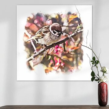 Kunstwerken met mussen werken het beste in groepen - net zoals de vogels zelf. Creëer een vrolijke galerij-muur met verschillende formaten en stijlen, of kies voor één groot statement-stuk. In keukens en eetruimtes bevorderen deze sociale vogeltjes de gezellige sfeer tijdens maaltijden. Kinderkamers profiteren van de speelse, vriendelijke uitstraling, terwijl werkruimtes baat hebben bij de optimistische energie die mussen uitstralen. Combineer met natuurlijke materialen en warme kleuren voor een samenhangend geheel.