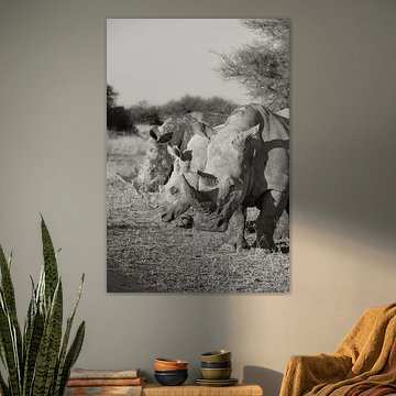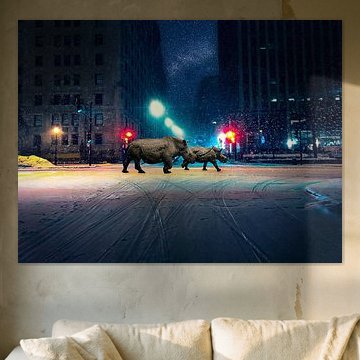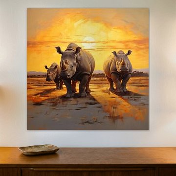 Deze collectie viert de indrukwekkende aanwezigheid van neushoorns, vastgelegd door diverse kunstenaars. De kunstwerken, variërend van schilderijen en fotografie tot collages en digitale kunst, benadrukken de kracht en majesteit van deze majestueuze dieren. De kunstenaars hebben zich gericht op de robuuste hoorns en de stevige bouw van neushoorns, wat hun indrukwekkende uitstraling versterkt.