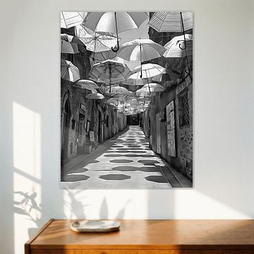 Ontdek de kunstcollectie Paraplu's - een verfrissende collectie die een nieuwe kijk biedt op deze praktische dagelijkse objecten. Hier vind je aansprekende werken waarin kunstenaars paraplu's centraal stellen in diverse stijlen en kleurrijke composities. Van levendige straatscènes tijdens regenbuien tot strakke, grafische interpretaties – deze collectie combineert herkenbare elementen met verrassende perspectieven. Bestel jouw favoriete werk in elke gewenste maat en op elk materiaal!