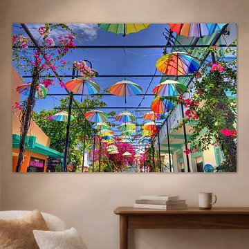 Ontdek de kunstcollectie Paraplu's - een verfrissende collectie die een nieuwe kijk biedt op deze praktische dagelijkse objecten. Hier vind je aansprekende werken waarin kunstenaars paraplu's centraal stellen in diverse stijlen en kleurrijke composities. Van levendige straatscènes tijdens regenbuien tot strakke, grafische interpretaties – deze collectie combineert herkenbare elementen met verrassende perspectieven. Bestel jouw favoriete werk in elke gewenste maat en op elk materiaal!