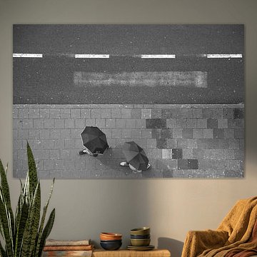 Ontdek de kunstcollectie Paraplu's - een verfrissende collectie die een nieuwe kijk biedt op deze praktische dagelijkse objecten. Hier vind je aansprekende werken waarin kunstenaars paraplu's centraal stellen in diverse stijlen en kleurrijke composities. Van levendige straatscènes tijdens regenbuien tot strakke, grafische interpretaties – deze collectie combineert herkenbare elementen met verrassende perspectieven. Bestel jouw favoriete werk in elke gewenste maat en op elk materiaal!