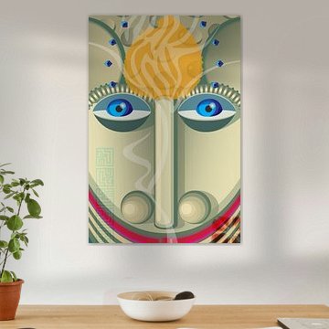De rustige en mysterieuze sfeer van Symmetrie kun je versterken door het te combineren met natuurlijke materialen zoals rotan manden of houten schalen. Voeg groene planten toe om de warme bruintinten te laten opvallen, of kies voor zachte textiel in beige en wit voor een harmonieus geheel. Bij een levendiger interieur meng je een werk uit deze collectie met kleurrijke kussens in terracotta of oker. De zachte kleurpaletten laten zich goed combineren met messing accessoires of keramiek in aardse tinten. Bouw zo laag voor laag een interieur op waarin rust en evenwicht centraal staan.