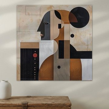 Plaats kunstwerken met geometrische vormen boven meubels met strakke, effen oppervlakken. Dit versterkt de rustgevende werking van beide elementen. De gestileerde vormen in Abstract art HANNA komen bijvoorbeeld goed tot hun recht boven een eenvoudig dressoir of sideboard.