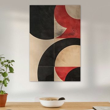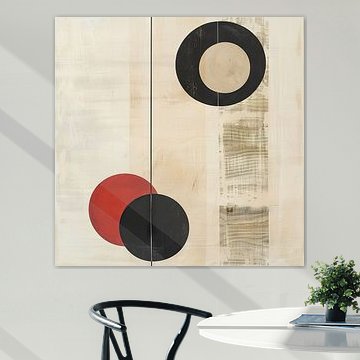 Plaats kunstwerken met geometrische vormen boven meubels met strakke, effen oppervlakken. Dit versterkt de rustgevende werking van beide elementen. De gestileerde vormen in Abstract art HANNA komen bijvoorbeeld goed tot hun recht boven een eenvoudig dressoir of sideboard.