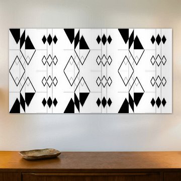 Zoek je rust door perfecte balans? Symmetrische composities brengen harmonie in je interieur. Denk aan zachte aardetinten en geometrische vormen die elkaar spiegelen, zoals in Sheltered. Deze stijl past moeiteloos bij moderne en minimalistische woonstijlen, omdat de herhaling van lijnen en vormen een gevoel van orde creëert.