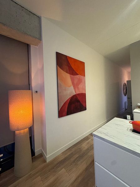 Warme tinten creëren direct een sfeervolle basis. De Tangerine Twist collectie combineert oranje, terracotta en zacht roze tot een harmonieus geheel dat rust uitstraalt. Deze zachte kleurencombinatie past perfect bij bohemian en Scandinavische woonstijlen, waarbij natuurlijke materialen en organische vormen centraal staan. Van abstracte bloemencomposities zoals Flowers in Vase, Red tot strakke minimalistische ontwerpen - de diversiteit is enorm.