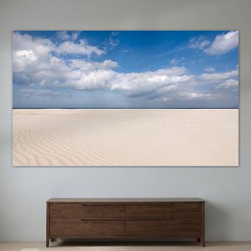 Liggend formaat is een populaire keuze voor Terschelling. Dit formaat benadrukt de horizon en vergroot het gevoel van ruimte, wat perfect aansluit bij de wijdse kustlandschappen. Hang het op ooghoogte in de woonkamer of slaapkamer voor een rustgevend effect.