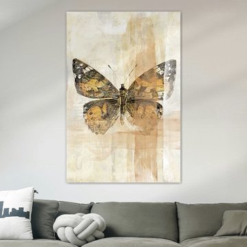 Goudgele vlinder - aquarel en mixed media van Emiel de Lange