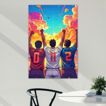 De Voetbal collectie biedt volop mogelijkheden om te combineren met andere wanddecoratie. Kies voor een gallery wall waar je verschillende clubkleuren en stemmingen mixt: van rustige zwart-wit beelden tot levendige stadionsfoto's. De subcollecties AFC Ajax, AZ voetbalclub en FC Barcelona kun je prima afwisselen met abstracte kunst in vergelijkbare tinten blauw, bruin of mauve. Denk ook aan het toevoegen van vintage voetbalattributen of ingelijste shirts tussen de kunstwerken. Plaats een fauteuil met kussens in clubkleuren eronder en het geheel komt mooi samen. Zo creëer je een hoek die jouw passie voor de sport laat zien zonder dat het té thematisch wordt.