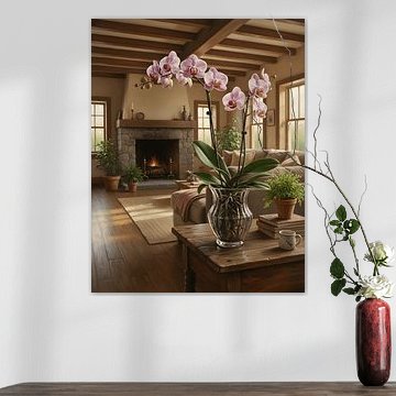 De woonkamer is een goede plek voor kunst uit de Vuur collectie. De warme bruine, terracotta en oranje tinten versterken de gezelligheid van deze ruimte, waar je 's avonds ontspant. Hang een kunstwerk met vuur boven de bank of tegenover je zithoek, zodat het een natuurlijk focuspunt wordt. De krachtige maar tegelijk rustige uitstraling werkt goed in combinatie met neutrale meubels en zachte verlichting, waardoor de vlammen en gloeiende kleuren extra opvallen zonder overweldigend te worden.
