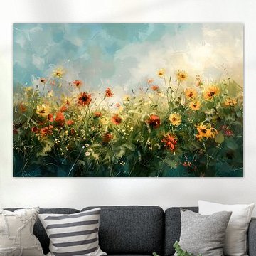Een uitgestrekt weiland vol wuivend gras en bloemen roept direct een gevoel van rust en vrijheid op. Het open landschap, vaak onder een heldere blauwe hemel, brengt de eenvoud van de natuur naar voren. Met onze kunst aan de muur van weidse landschappen haal je deze serene sfeer naar je eigen huis. Elk werk is verkrijgbaar op canvas, plexiglas of aluminium en past perfect in elk interieur. Laat je inspireren door de kalme schoonheid van een weiland en creëer een rustige, natuurlijke ambiance in huis.