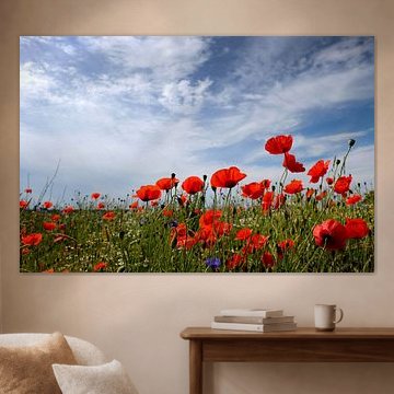 Een uitgestrekt weiland vol wuivend gras en bloemen roept direct een gevoel van rust en vrijheid op. Het open landschap, vaak onder een heldere blauwe hemel, brengt de eenvoud van de natuur naar voren. Met onze kunst aan de muur van weidse landschappen haal je deze serene sfeer naar je eigen huis. Elk werk is verkrijgbaar op canvas, plexiglas of aluminium en past perfect in elk interieur. Laat je inspireren door de kalme schoonheid van een weiland en creëer een rustige, natuurlijke ambiance in huis.