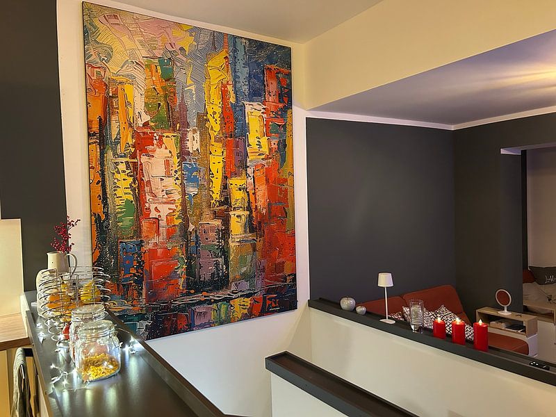 Wolkenkrabbers kunstwerken laten zich goed combineren met andere stedelijke motieven of juist met rustgevende natuurtaferelen voor contrast. Kies bij een levendige skyline in felle kleuren voor kalme beelden ernaast, of zet mysterieuze zwart-wit wolkenkrabbers naast andere architectuurfotografie voor een samenhangende galeriewand. Industriële accessoires zoals metalen schappen of betonlook vazen versterken het stedelijke karakter van deze collectie. Combineer verschillende formaten en techniques om diepte te creëren: een groot canvas met kleinere fotoprints (Fotoprint) ernaast zorgt voor een dynamische presentatie die de skyline naar binnen haalt.