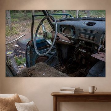 Autokerkhof in een bos in Ryd in Zweden