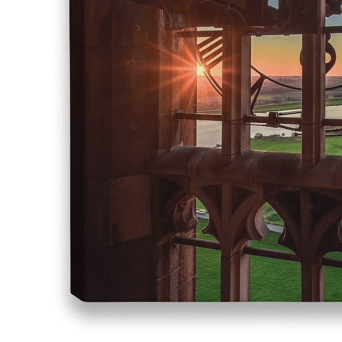 De wijzers van de klok staan recht boven elkaar. De klok slaat, het is 18:00 uur. Vanuit de cuneratoren in Rhenen zijn de laatste zonnestralen van de dag te zien.