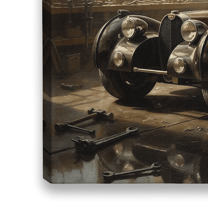 Koop dit digital art kunstwerk 1938 Bugatti 57 C Atlantic in de werkplaats van Jan Keteleer als reproductie op canvas, aluminium dibond, (ingelijste) fotoprint, behang en ArtFrame, op maat geprint in Fine-Art kwaliteit.