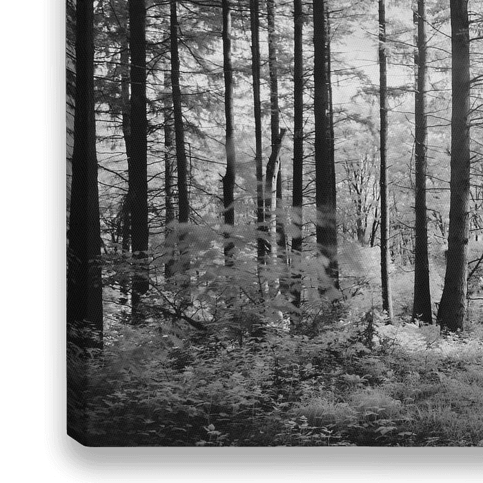 Een bospad in de Bossen rondom Mook. Het bijzondere zwart-wit is verkregen door de foto allene te maken met infrarood licht. Hiervoor wordt doorgaans een filter gebruikt dat alle licht weglaat en alleen infrarood doorlaat. Het geeft een vreem maar ook mooi beeld in zwart-wit.