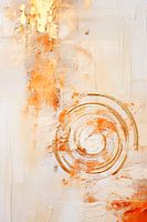 Moderne kunst met goudkleurige vormen, sterke contrasten en een textuur in oranje, perzik en lichte aardetinten. Dit abstracte schilderij straalt een tijdloze, frisse energie uit. De kleuren smelten samen tot een harmonieuze compositie.