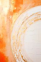 Moderne kunst met goudkleurige vormen, sterke contrasten en een textuur in oranje, perzik en lichte aardetinten. Dit abstracte schilderij straalt een tijdloze, frisse energie uit. De kleuren smelten samen tot een harmonieuze compositie.