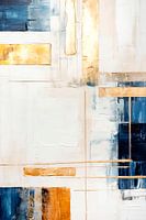 Moderne kunst met goudkleurige vormen, sterke contrasten en een textuur in donkerblauw en wit. Dit abstracte schilderij straalt een tijdloze energie uit. De kleuren smelten samen tot een harmonieuze compositie.