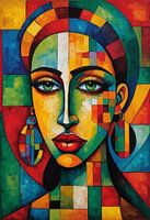Abstract Afrikaans kubistisch vrouwenportret van MIROKKU