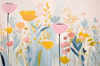 Dit werk is een beetje met de kleuren en bloemen van het boerenbont servies. Oer Hollands en tijdloos.