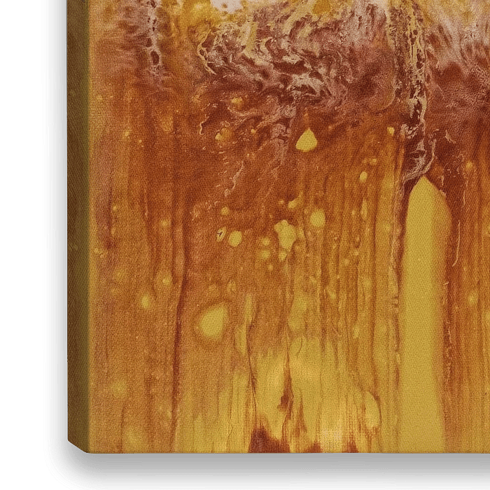 Abstract in warme tinten goud en koper in acrylverf op canvas. Een schilderij waarin beweging, energie en eenvoud zijn samengebracht.