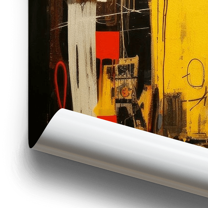 Dit opvallende en expressieve muurschilderij weerspiegelt een stijl van gedurfde en energieke composities. Het werk ademt een spontane levendigheid uit, met levendige kleuren en dynamische abstracte vormen.