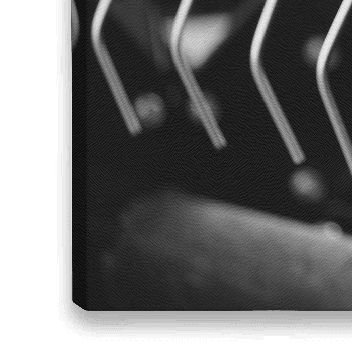 Close-up abstract beeld van landbouwmateriaal: oogstmachine tanden. Landbouwmachines in zwart-wit met selectieve nadruk.