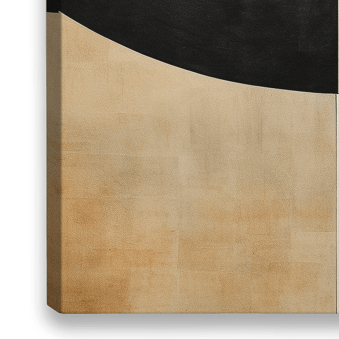 Abstract Minimalisme - Het schilderij toont een abstracte compositie met geometrische vormen, gedomineerd door een grote cirkel die deels overlapt met een rechthoekig element. De stijl is minimalistisch en modern, met een beperkt kleurenpalet van zwart, wit, en diverse neutrale tinten, wat een stijlvolle en rustgevende uitstraling…