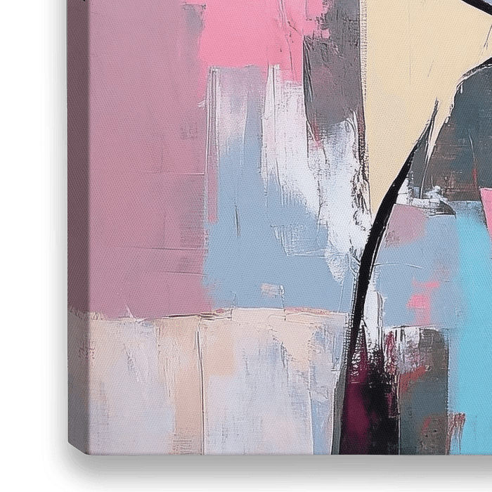 Details: abstract, moderne kunst, dynamisch, pastel, roze, blauw, oranje, vormen