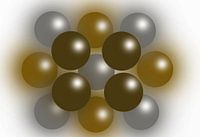 Abstract of gold and silver balls piled up.