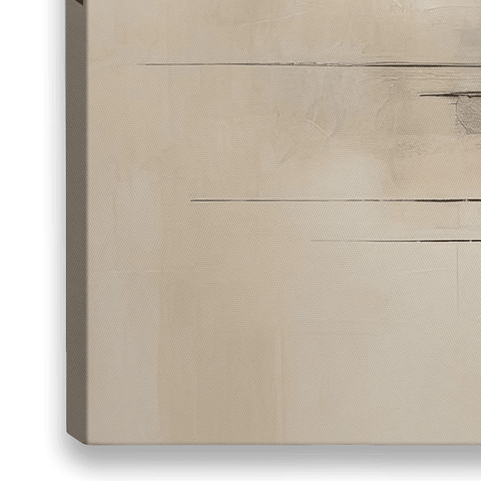 Abstract | Urban Silence - Dit abstracte schilderij kenmerkt zich door een samenspel van geometrische vormen en een dominante beige achtergrond, verrijkt met accenten van oranje en wit die een optische diepte creëren.