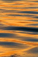 Het licht van de ondergaande zon weerkaatst in de golven