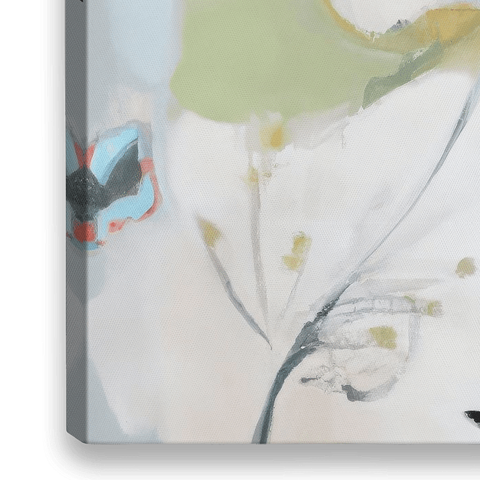 Abstract bloemenveld in pastel met een snufje zwart. Luchtige en speelse weergave van een veld vol bloemen (ingezoomd). Dit werk geeft sfeer aan je huis en een lente gevoel. Abstract botanisch.