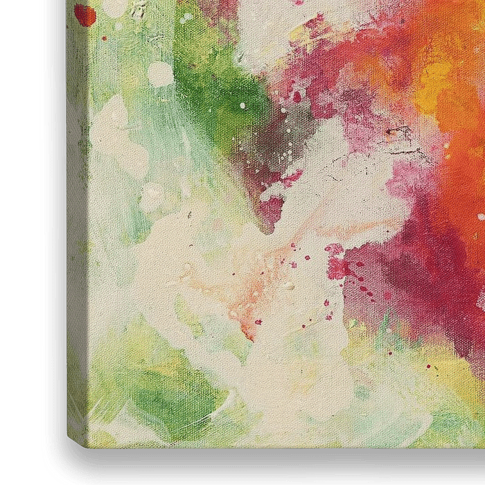 Abstract acrylschilderij met een gelaagde compositie in rood-, geel- en groentinten, aangevuld met zachte, lichte partijen. Kleurvlakken vloeien in elkaar over en wisselen transparante en meer verzadigde lagen af. De verf is vrij en intuïtief aangebracht, met ruimte voor vermenging van kleur. Dit geeft het werk een veelkleurige en…