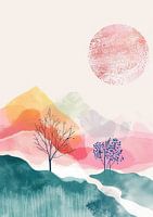 Abstract kleurrijk kunstwerk - Landschap abstract. Moderne Japandi / scandinavische stijl.