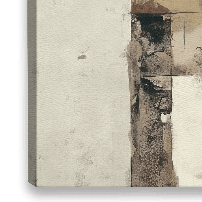 Details: abstract schilderij, aardetinten, off-white, modern kunst, textuur, minimalisme, beige, grijs, bruin, zwart