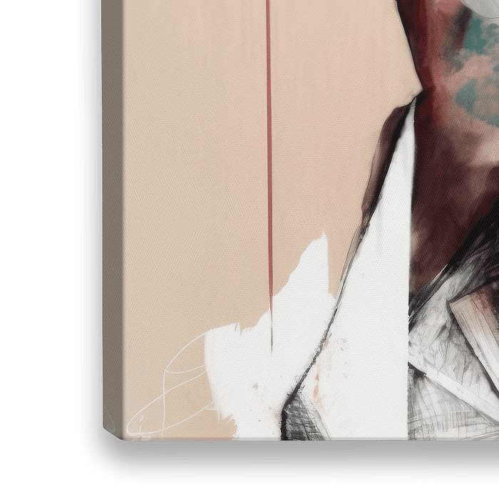 Abstract mixed media (gemengde techniek) portret, in een combinatie warme en pastelkleuren. Geschikt voor alle soort ruimtes, mooi in groot formaat aan de muur!