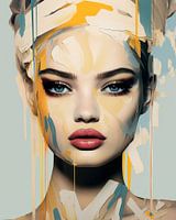 Abstract portret in geel, wit en blauw. Kies zelf het formaat en het materiaal en maak het werk op die manier helemaal naar jouw wens zodat het perfect past in je interieur.