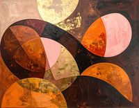 Dit abstracte schilderij met geometrische vormen en goudaccenten is een krachtig en modern kunstwerk voor kantoor of woonkamer. Het kleurenpalet bestaat uit diepe rode tinten, brons, zwart en zachte roze schakeringen die elkaar versterken. De combinatie van glanzende en matte vlakken maakt dit groot wandpaneel met rood, zwart en brons tinten een echte eyecatcher. Voor iedereen die op zoek is naar een eigentijds abstract kunstwerk met luxe uitstraling, is dit schilderij de perfecte keuze.