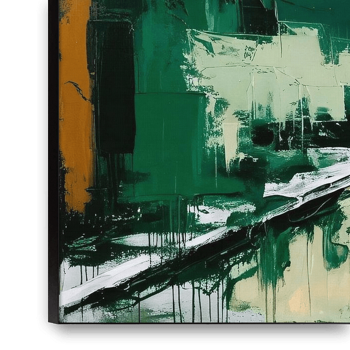 Deze prachtige abstracte weergave van een stadsgezicht brengt moderne esthetiek en artistieke flair samen. De hoge gebouwen aan weerszijden creëren een dynamisch perspectief, terwijl de subtiele kleurtonen in groen en bruin een rustige, maar intrigerende sfeer oproepen. Ideaal voor een moderne woonkamer of kantoorruimte, dit schilderij…