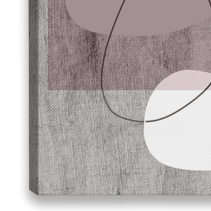Abstract schilderij met organische vormen. In roze en wit op een linnen achtergrond. Kies zelf het formaat bij dit werk en maak het passend voor jouw interieur.