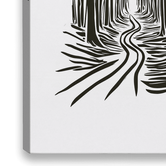 Ontdek de rust en eenvoud met dit minimalistisch ontwerp. Geïnspireerd door de krachtige zwart-wit contrasten, neemt dit kunstwerk je mee op een stille wandeling door een abstract bos. De golvende lijnen suggereren een pad dat zich een weg baant door de gestileerde bomen, wat een gevoel van beweging en diepte creëert. Perfect voor de…
