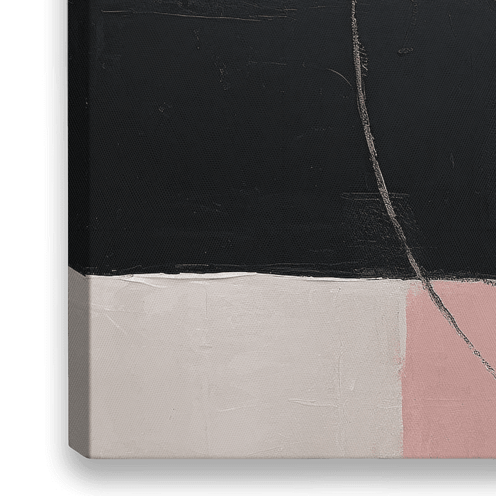 Abstracte Harmonie | Abstract Peach Fuzz - Dit abstracte kunstwerk speelt met geometrische vlakken en texturen, gedomineerd door een groot Peach Fuzz gekleurd vlak dat een subtiele warmte uitstraalt. Contrast wordt gecreëerd door de inzet van zwart en crèmekleurige tonen, naast een accent van goudgeel dat bijdraagt aan een verfijnde…